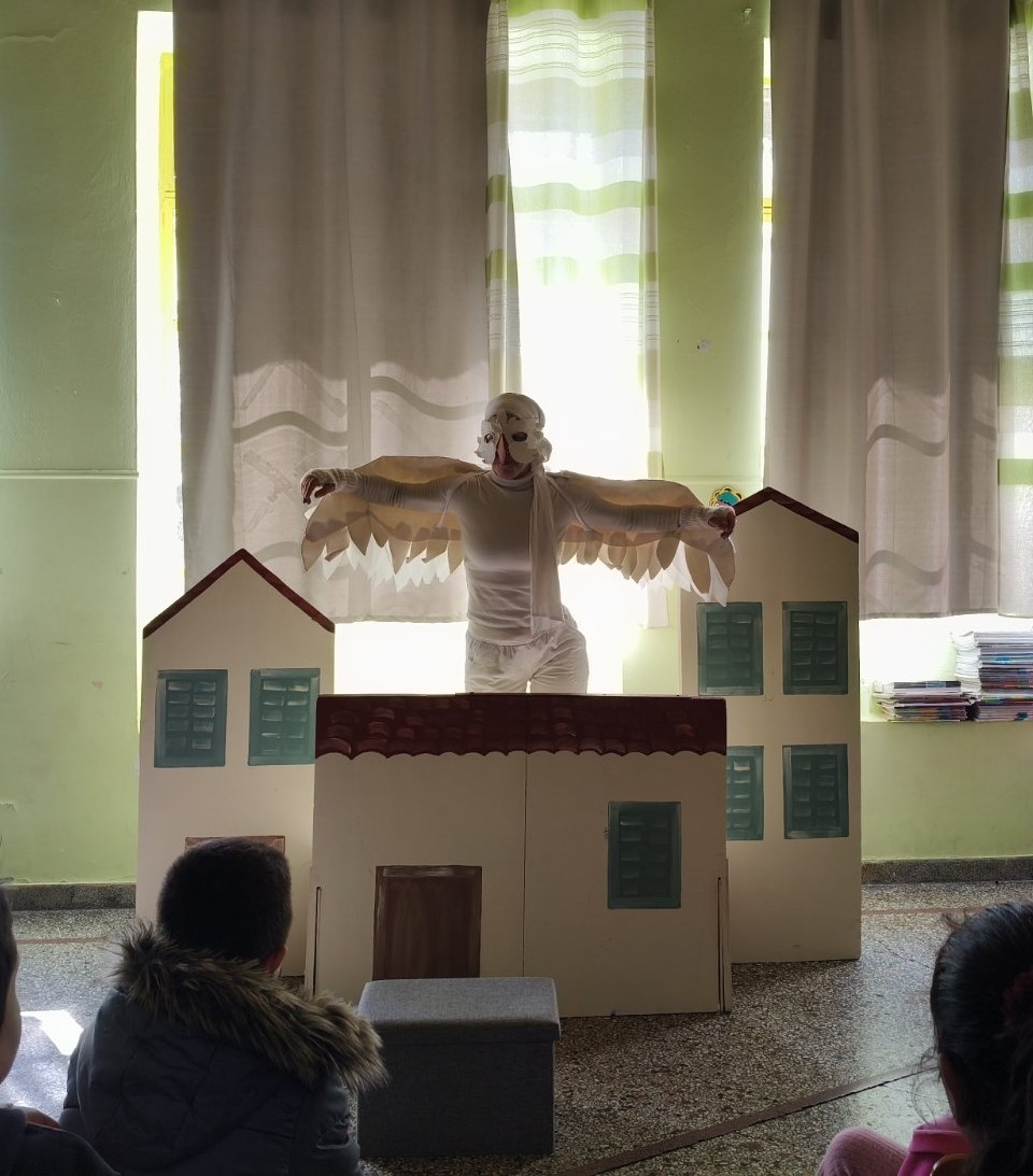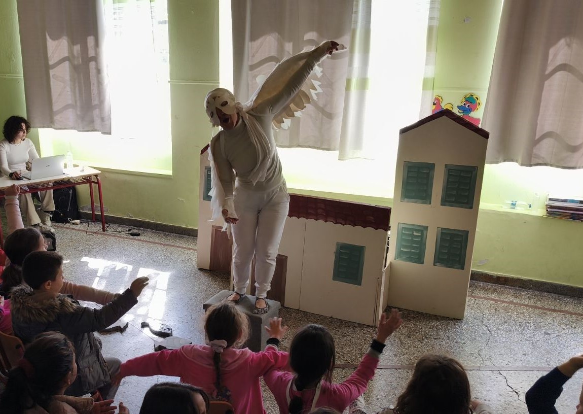 Την Παρασκευή 21 Φεβρουαρίου 2025 το σχολείο μας επισκέφτηκε η θεατρική ομάδα «Λήδα» και έδωσε θεατρική παράσταση για τους μαθητές/τριες του σχολείου μας. Η παράσταση «Η ιστορία του γάτου που έμαθε στον γλάρο να πετάει» του Λουίς Σεπουβέδα σε σκηνοθεσία του Γιώργου Λουριδά και διασκευή της Γεωργίας Καποπούλου με την Μέλισσα Σελεβίστα ενθουσίασε μικρούς και μεγάλους παρουσιάζοντας θεμελιώδη θέματα όπως η φιλία, η συνεργασία, η υπευθυνότητα και η αποδοχή της διαφορετικότητας. Αυτές οι αξίες είναι βασικές για την κοινωνική και συναισθηματική ανάπτυξη των παιδιών και ενσωματώνονται στους διδακτικούς και παιδαγωγικούς στόχους του Δημοτικού σχολείου.