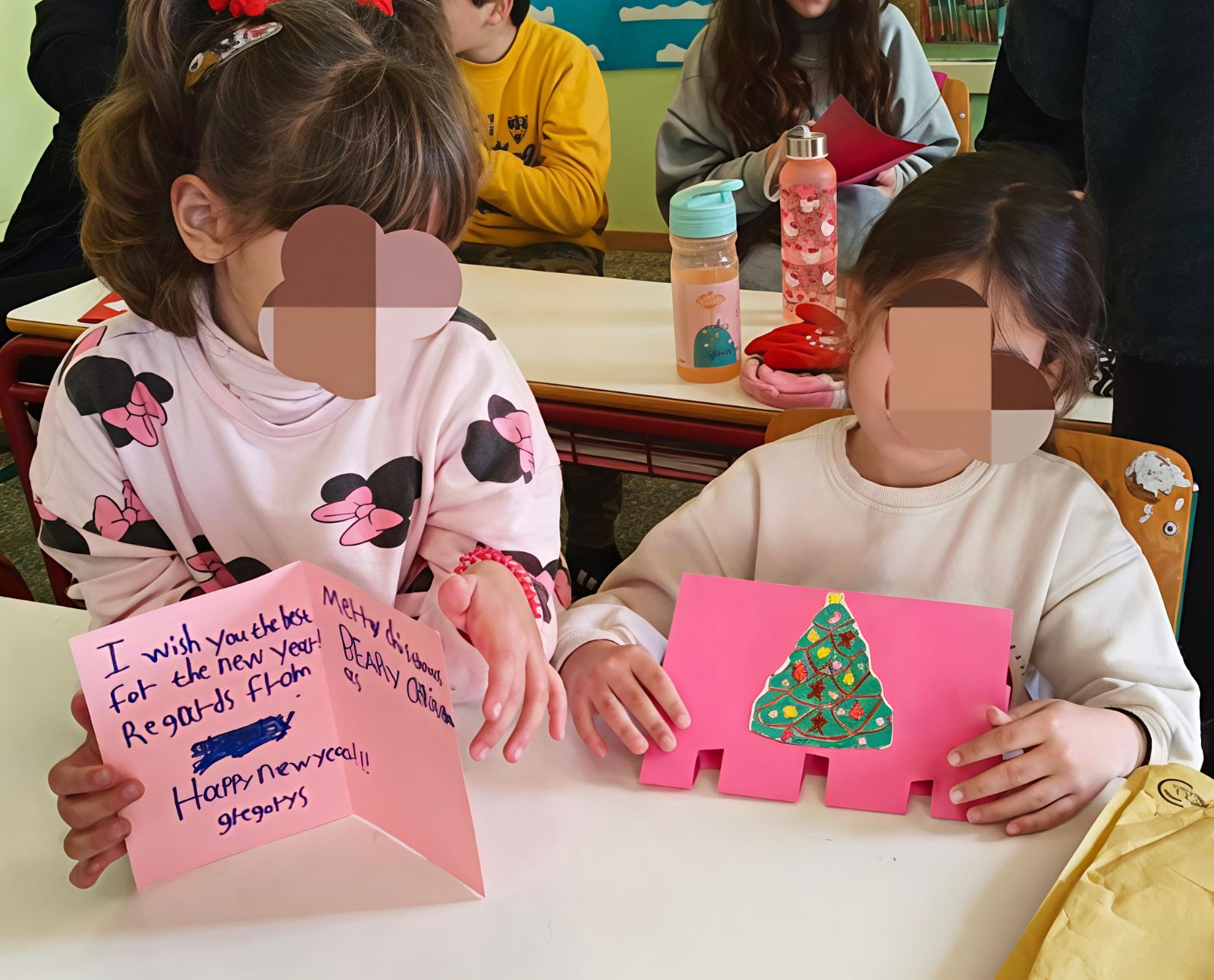Επίσης δημιούργησαν μια ψηφιακή χριστουγεννιάτικη κάρτα με ευχές για Καλά Χριστούγεννα σε διάφορες γλώσσες. Λίγο πριν το κλείσιμο για τις διακοπές των Χριστουγέννων, πραγματοποιήθηκε μια διαδικτυακή συνάντηση, κατά την οποία οι μαθητές είχαν την ευκαιρία να επικοινωνήσουν ζωντανά με τα άλλα σχολεία, να ανταλλάξουν ευχές, να μοιραστούν εμπειρίες και να τραγουδήσουν τα κάλαντα.