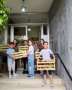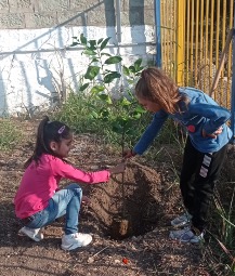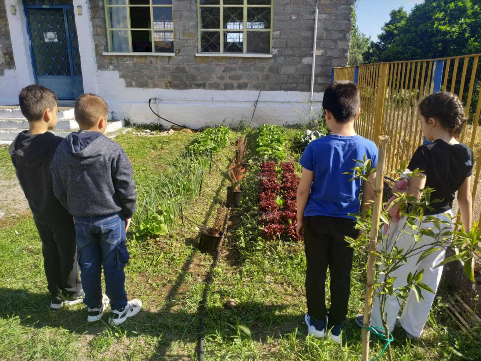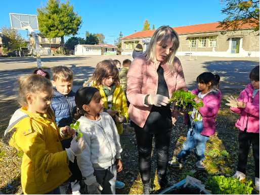 Οι μικροί γεωργοί και ζωγράφοι, με μεγάλη χαρά συμμετέχουν βιωματικά στην μάθηση φυτεύοντας, καλλιεργώντας, ποτίζοντας. Και έρχεται η χαρά της συγκομιδής που αποτυπώνεται στα χαρούμενα πρόσωπα των μαθητών.