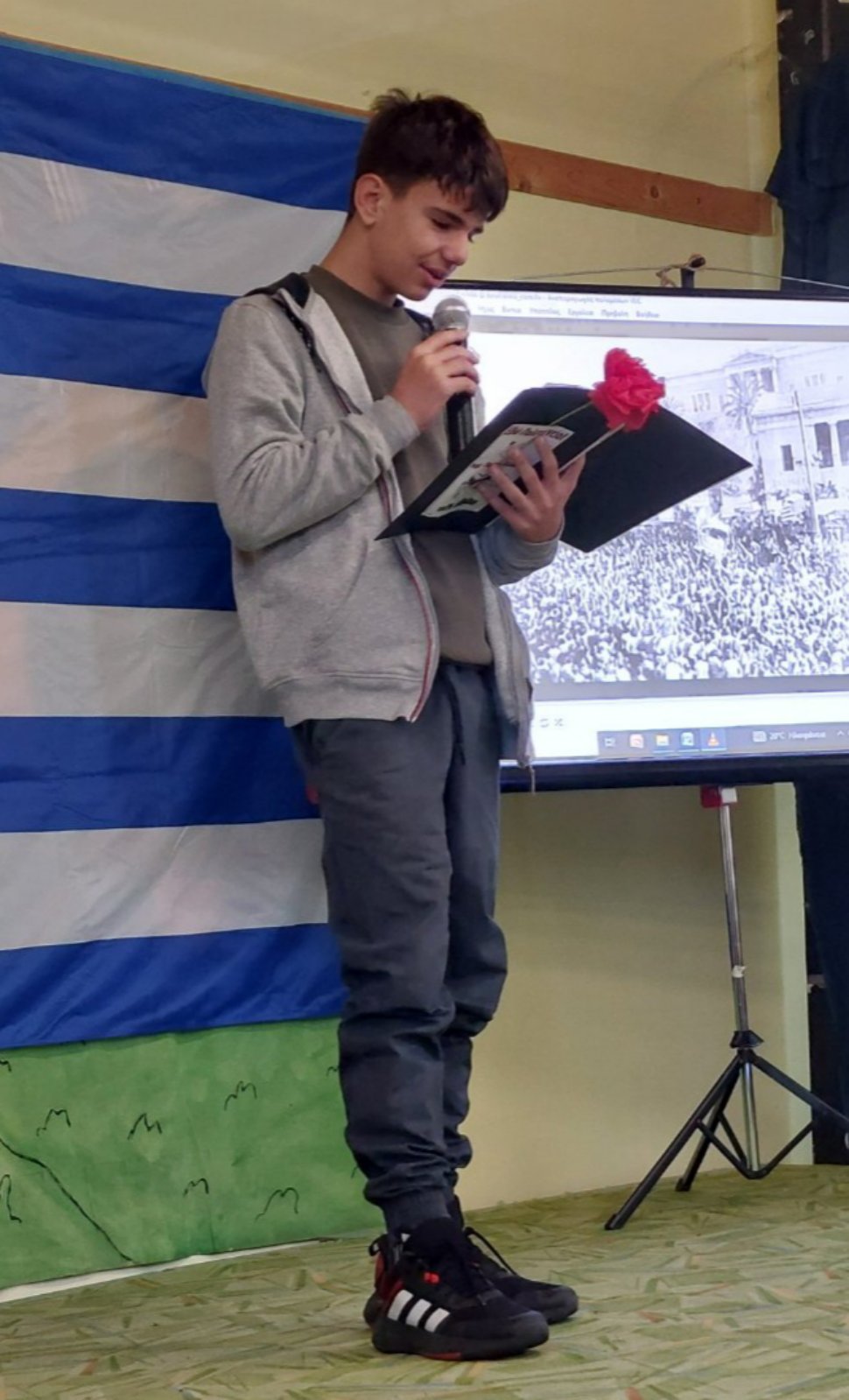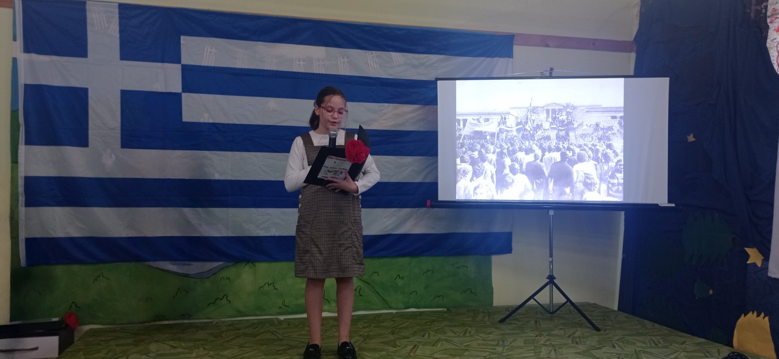 Την Παρασκευή 15 Νοεμβρίου 2024 γιορτάστηκε στο Δημοτικό Σχολείο Καλυβίων η επέτειος από την Εξέγερση στο Πολυτεχνείο. Τιμήσαμε τους ήρωες του Πολυτεχνείου που έσπασαν τη σιωπή του φόβου, κινητοποιώντας με τόλμη τις υγιείς δυνάμεις του τόπου απέναντι στη βία και τον αυταρχισμό της χούντας. Σε αυτό το πλαίσιο, η αξία της επετείου του Πολυτεχνείου εντοπίζεται ακριβώς στο να μας υπενθυμίζει πως ό,τι θεωρούμε πλέον αυτονόητο, κερδήθηκε με αίμα. Και πως, προκειμένου να διατηρηθεί, πρέπει να προστατεύεται και να ενισχύεται διαρκώς. Οι μαθητές και οι μαθήτριες της Ε' και ΣΤ' τάξης με κείμενα, ποιήματα και τραγούδια τίμησαν την ημέρα αυτή και τώρα, όπως και τότε, έδειξαν το δρόμο για τη Δημοκρατία. Την επιμέλεια της γιορτής είχαν οι εκπαιδευτικοί Μακρή Κατερίνα και Σκάρλου Αθανασία.
