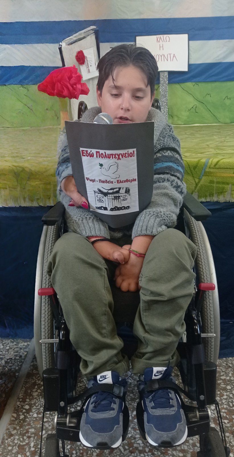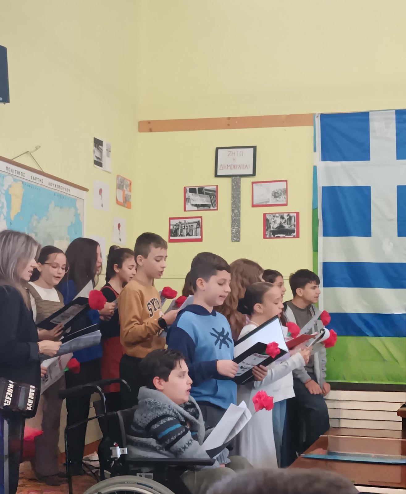 Την Παρασκευή 15 Νοεμβρίου 2024 γιορτάστηκε στο Δημοτικό Σχολείο Καλυβίων η επέτειος από την Εξέγερση στο Πολυτεχνείο. Τιμήσαμε τους ήρωες του Πολυτεχνείου που έσπασαν τη σιωπή του φόβου, κινητοποιώντας με τόλμη τις υγιείς δυνάμεις του τόπου απέναντι στη βία και τον αυταρχισμό της χούντας. Σε αυτό το πλαίσιο, η αξία της επετείου του Πολυτεχνείου εντοπίζεται ακριβώς στο να μας υπενθυμίζει πως ό,τι θεωρούμε πλέον αυτονόητο, κερδήθηκε με αίμα. Και πως, προκειμένου να διατηρηθεί, πρέπει να προστατεύεται και να ενισχύεται διαρκώς. Οι μαθητές και οι μαθήτριες της Ε' και ΣΤ' τάξης με κείμενα, ποιήματα και τραγούδια τίμησαν την ημέρα αυτή και τώρα, όπως και τότε, έδειξαν το δρόμο για τη Δημοκρατία. Την επιμέλεια της γιορτής είχαν οι εκπαιδευτικοί Μακρή Κατερίνα και Σκάρλου Αθανασία.